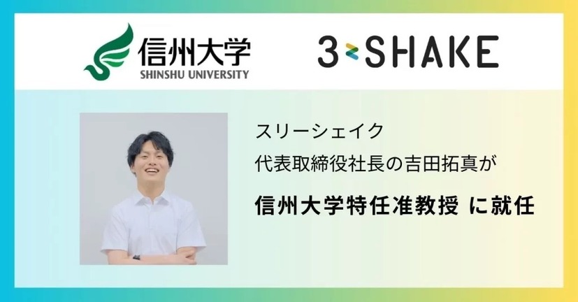 株式会社スリーシェイクは4月10日、代表取締役社長の吉田拓真氏が国立大学法人信州大学特任准教授に就任したと発表した。