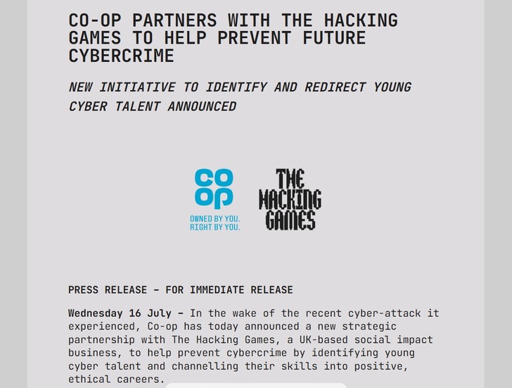 コウリー=ハク氏のテレビ出演は、社会的影響力のある事業 The Hacking Games との提携をコープが発表した数時間後に行われた。 The Hacking Games は、サイバー犯罪に陥りやすい可能性のある、神経多様性を持つ若者を特定し、彼らの関心を倫理的なサイバーセキュリティの追求へと導くことを目指している。