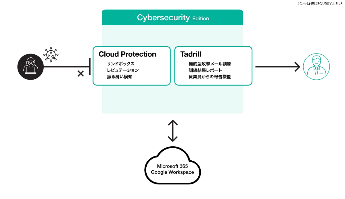 Cybersecurity Edition: テクノロジー、人、プロセスの全方位で、組織をサイバー攻撃から守ることを目的としています。具体的には、ランサムウェアの起点となるような怪しい内容の電子メールを全従業員に送信し、対応を訓練するサービスが含まれます。組織全体のセキュリティに対する意識を、実態に即して把握し、PDCAを回していけます。 この訓練機能はTadrill(タドリル)と呼ぶサービスで、現場からの提案を後押しするHENNGEのチャレンジ精神から生まれました。