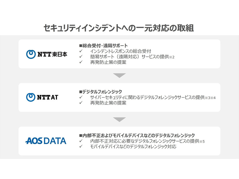 東日本電信電話株式会社(NTT東日本)、NTTアドバンステクノロジ株式会社、AOSデータ株式会社は12月2日、セキュリティインシデントへの一元対応を実現するための連携協定を締結したと発表した。
