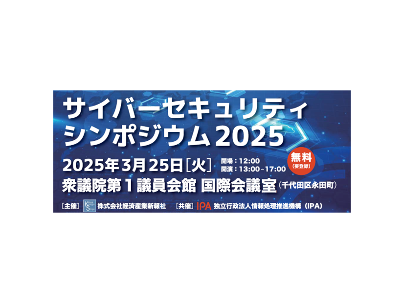 独立行政法人情報処理推進機構(IPA)は3月4日、3月25日に「サイバーセキュリティーシンポジウム2025」を開催すると発表した。