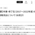 摂南大学は6月6日、卒業・修了生の個人情報流出について発表した。