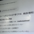 株式会社LogStare のブースには「SOC 無人化」などのパワーワードが掲げられていたが、最終判断は人間が行う必要があるわけでこれはあくまで製品コンセプトを瞬間的に伝えるためのキャッチコピーであろう。それよりもむしろ、この新機能はたとえば、ある程度の規模がある SOC 事業者などが一括採用し、新人オペレーターを育成するにあたっての「研修補助」「補助講師」的な役割として活用するなど、さまざまな利活用の可能性がある。