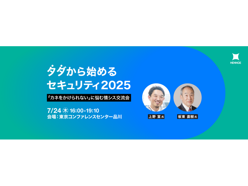 HENNGE株式会社は6月24日、東京コンファレンスセンター品川で「タダから始めるセキュリティ2025:「カネをかけられない」に悩む情シス交流会」を7月24日に開催すると発表した。