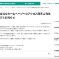 リリース(当社グループ会社のホームページへのアクセス障害の発生に関するお詫びとお知らせ)