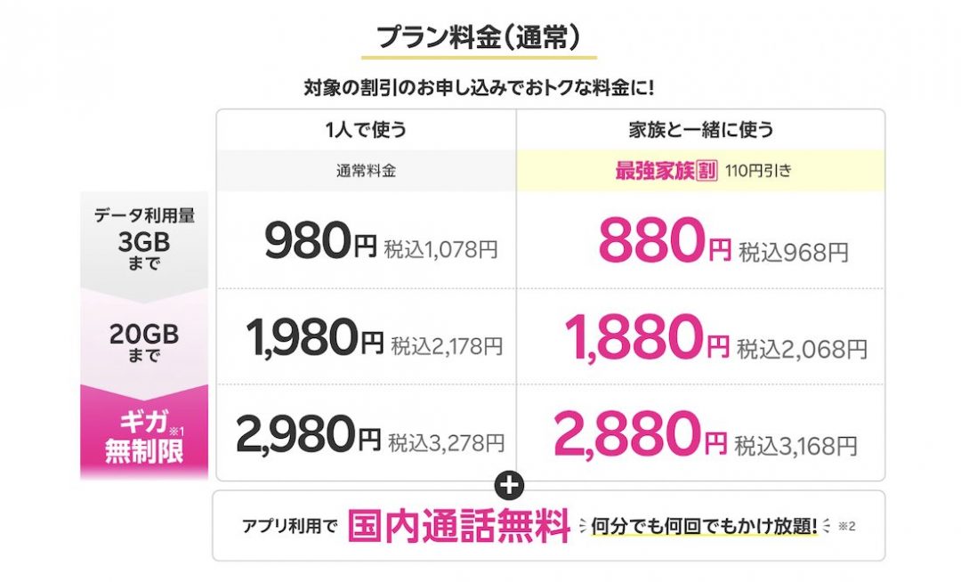 格安SIMの中でも、特に家族で一気に乗り換えすると群を抜いてお得になるのではないでしょうか。