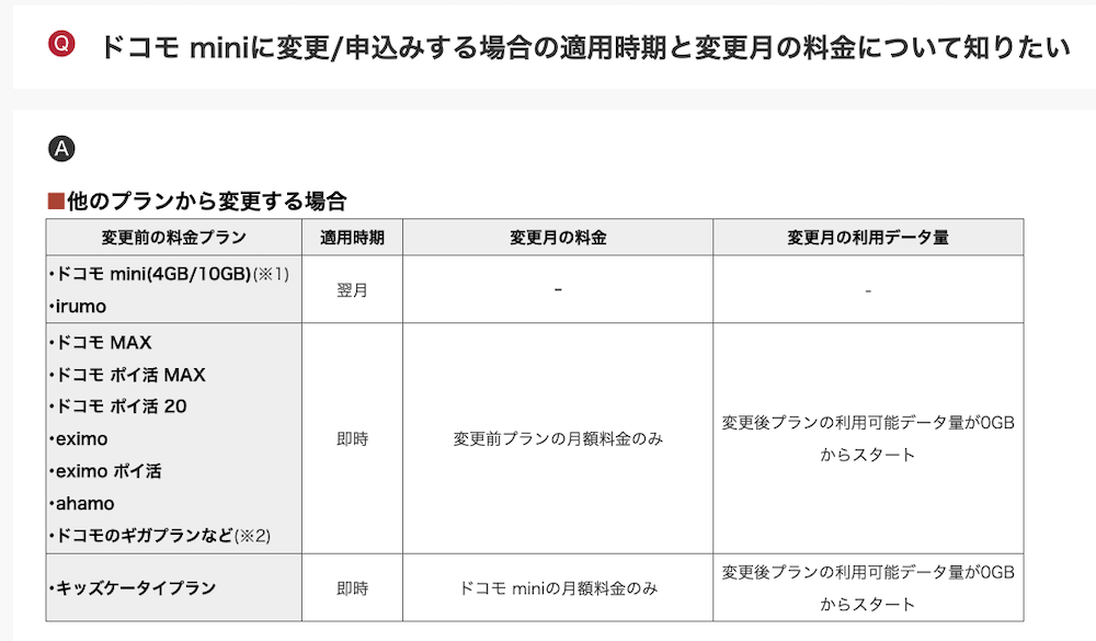 ahamoからドコモminiへの乗り換えは、マイドコモからのプラン変更でいつでも可能です。