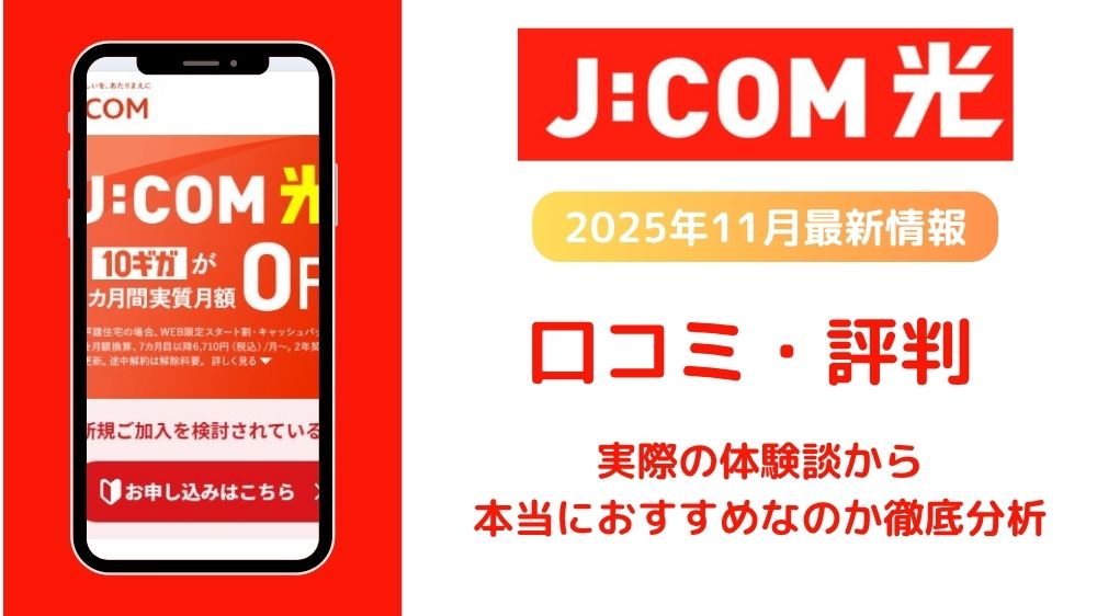 【2025年11月最新版】J:COM NET光の評判は?口コミからわかるメリット・デメリットを徹底解説