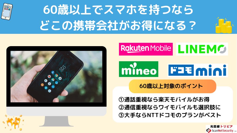 【60歳以上対象】スマホ各社の料金比較!お得にスマホを選ぶ方法を全解説します。