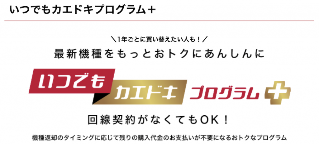 いつでもカエドキプログラム+端末を購入する方約2年後に返却で残りの支払い免除