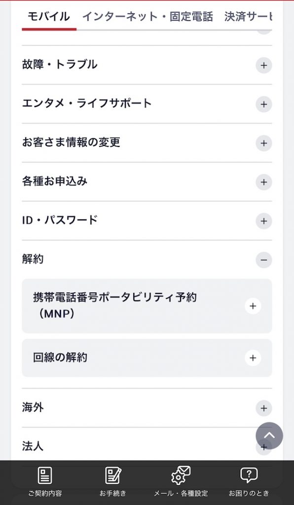 - 「携帯電話番号ポータビリティ予約(MNP)」をタップ