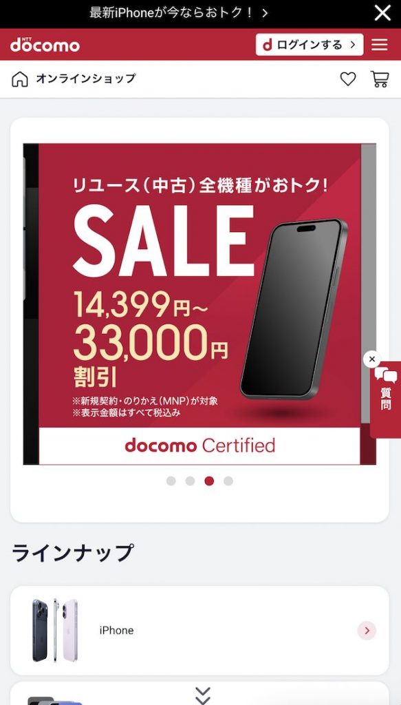 ドコモオンラインショップ利用にはdアカウントへのログインが必要