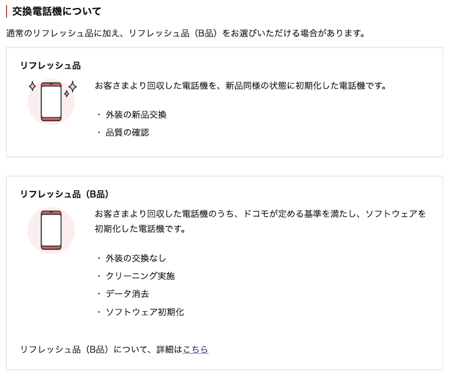 リフレッシュ品(B品)だと交換費用が安いため、機種変更代が安く済みます。