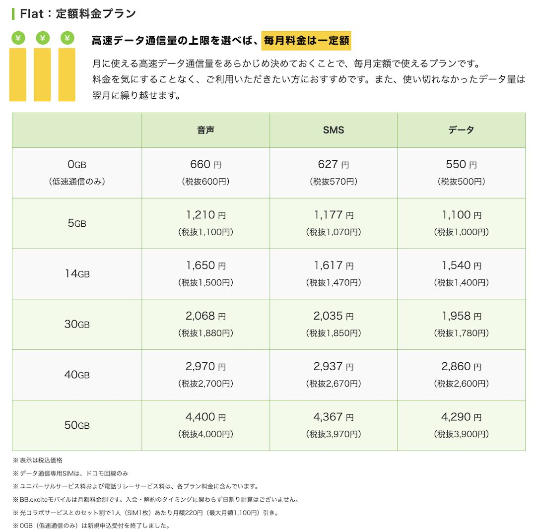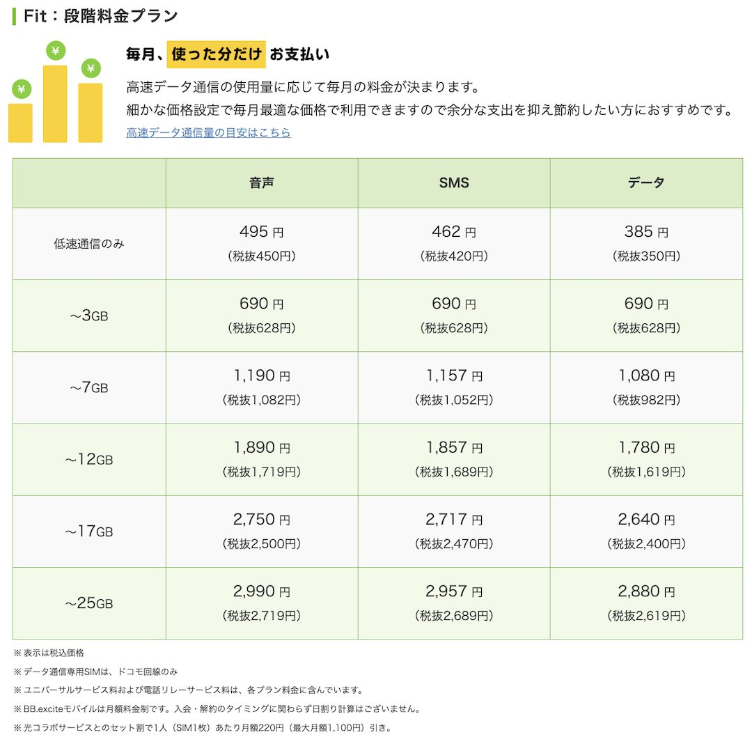 - エキサイトモバイルの料金プラン