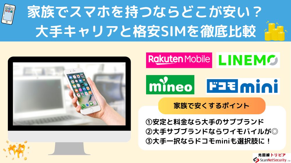 家族でスマホを持つならどこが安いのか徹底比較。大手キャリアから格安SIMまで【2025年版】