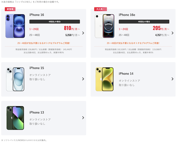 ワイモバイルのオンラインストアには、iPhone16e、iPhone16の在庫が準備されています。