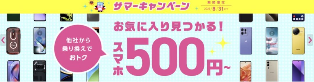 - 適用条件:対象プランを利用し、キャンペーン期間中にIIJmioサプライサービスにて対象端末を端末のみで購入した場合