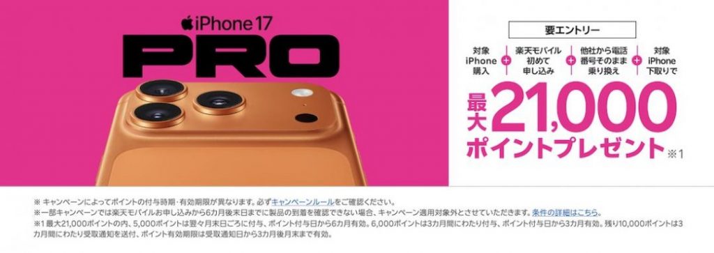 最新iPhone17への乗り換えを検討している方に、楽天モバイルはとてもお得キャンペーンを用意しています。