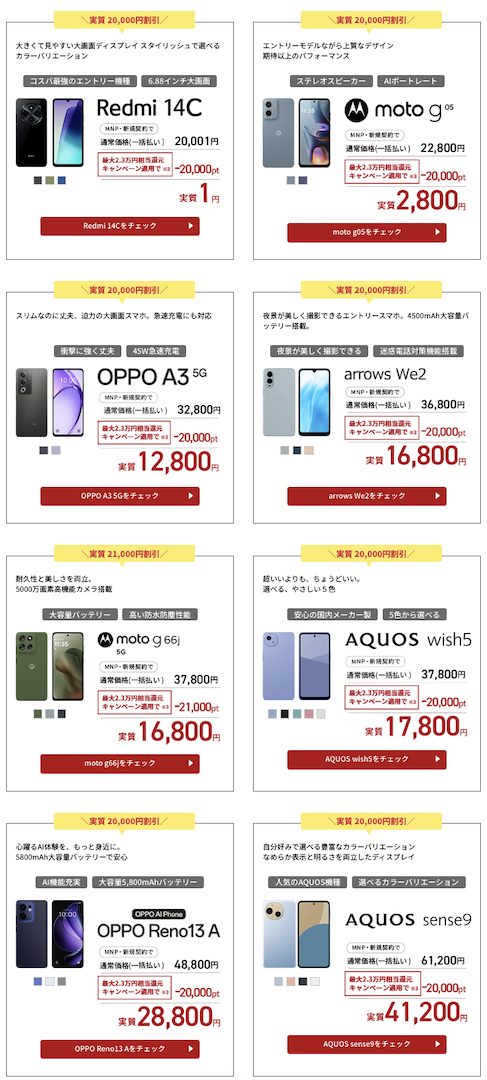 端末が実質最大2.3万円割引!