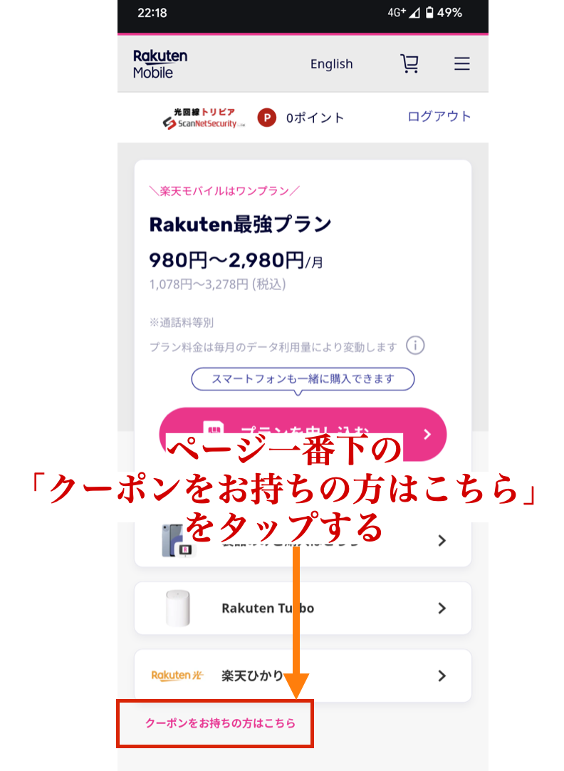 今すぐ三木谷キャンペーンを活用してグッとお得に楽天モバイルに乗り換えるなら、特設ページからクーポンコードの入力に進んで下さい。