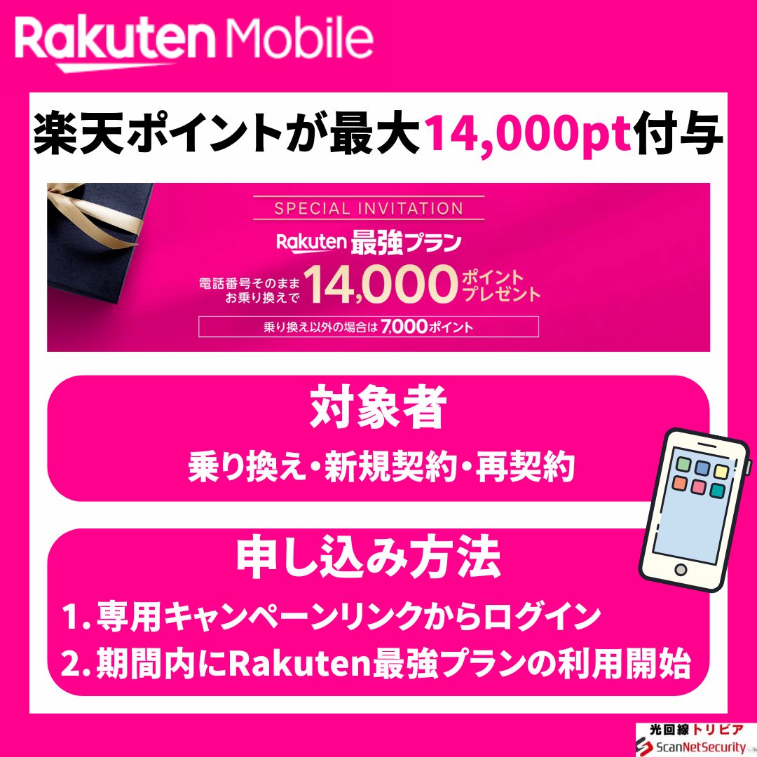 - 電話番号そのまま乗り換え(MNP)で14,000ポイント還元