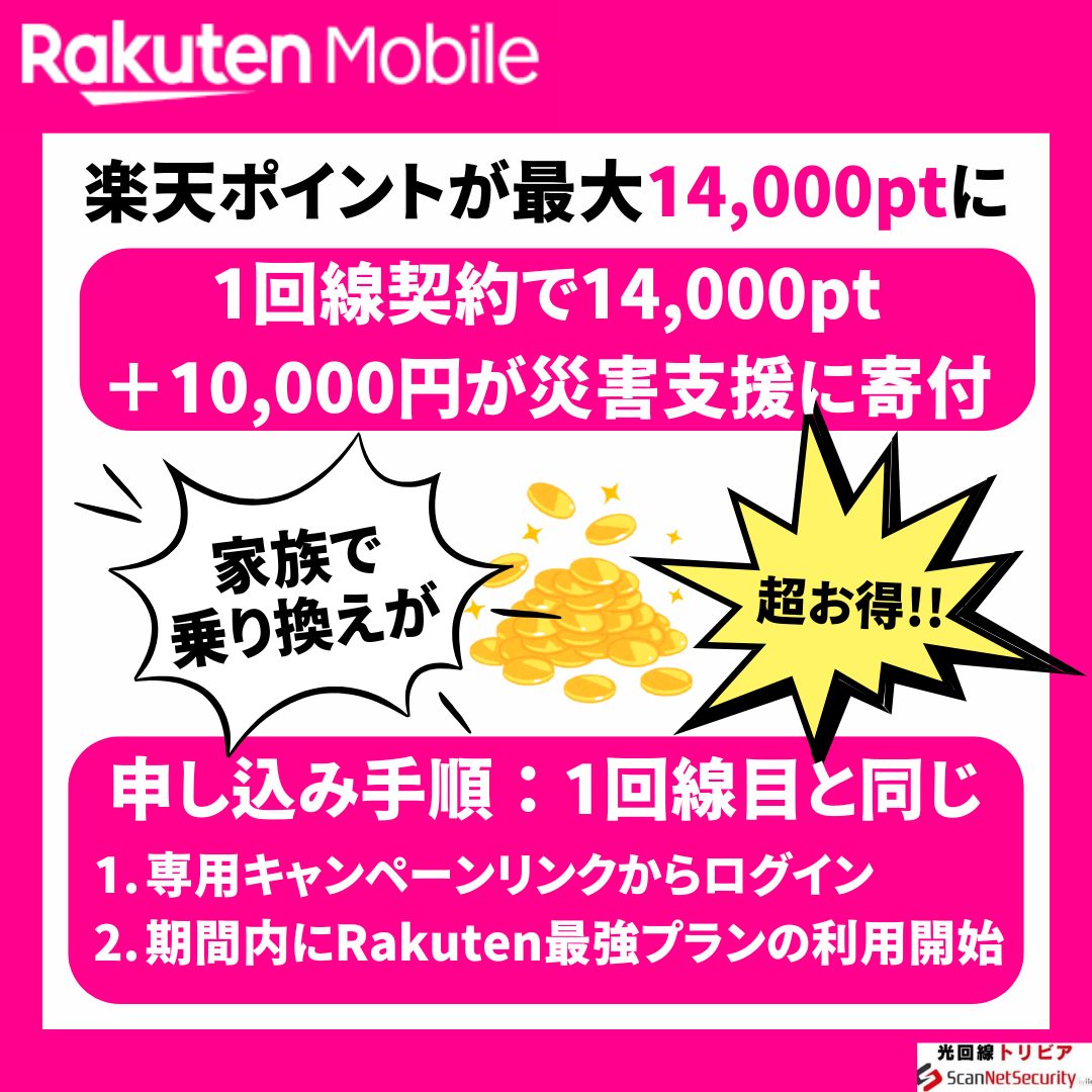 番号そのままで乗り換えでも、新規でも、三木谷キャンペーンからお得にポイントをゲットすることができます。