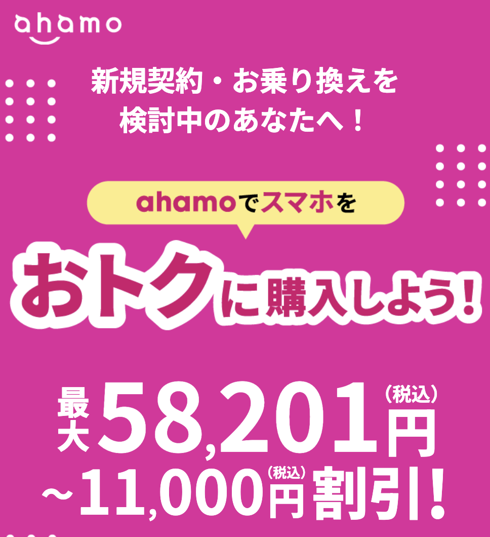 また、ahamoではお得な乗り換え&端末割引キャンペーンがあるのも大きなメリット!