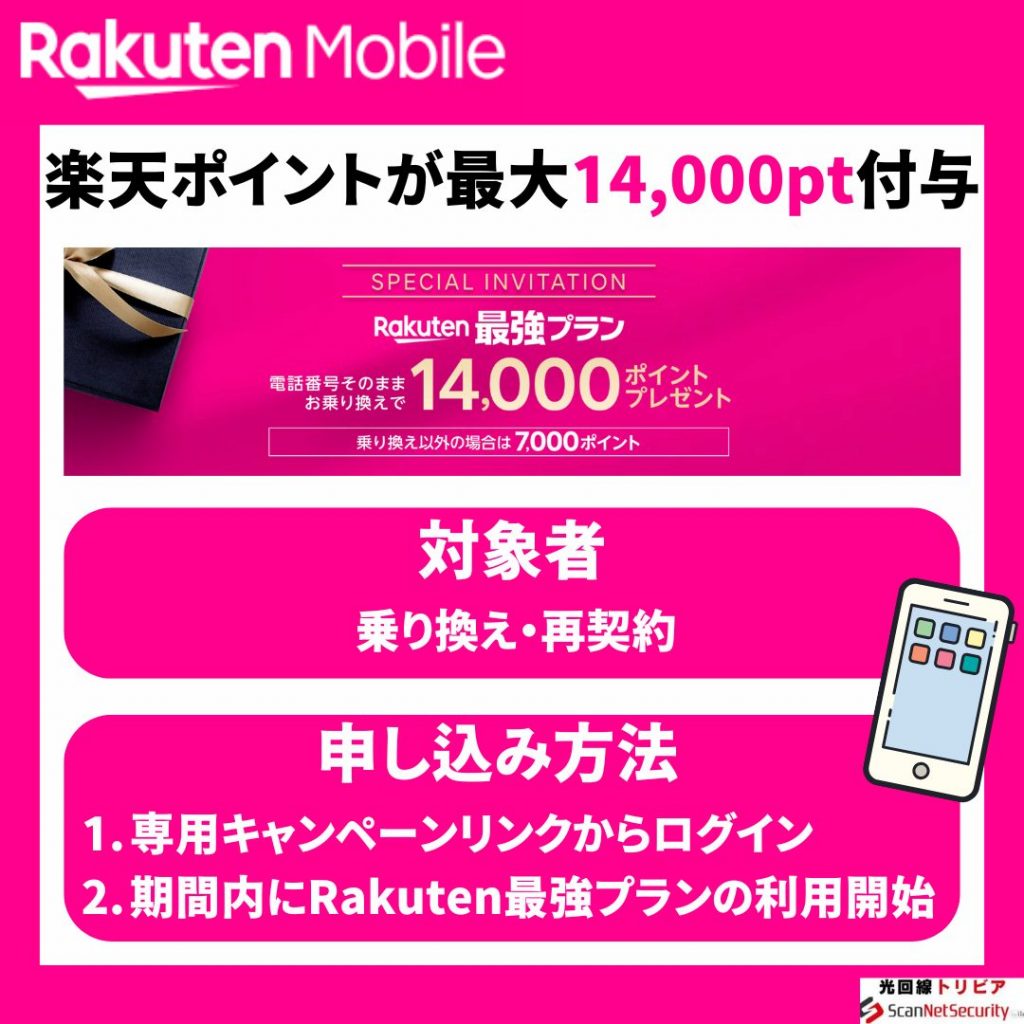 | 特典内容 | 他社からの乗り換え(MNP):14,000ポイント 新規契約:7,000ポイント |