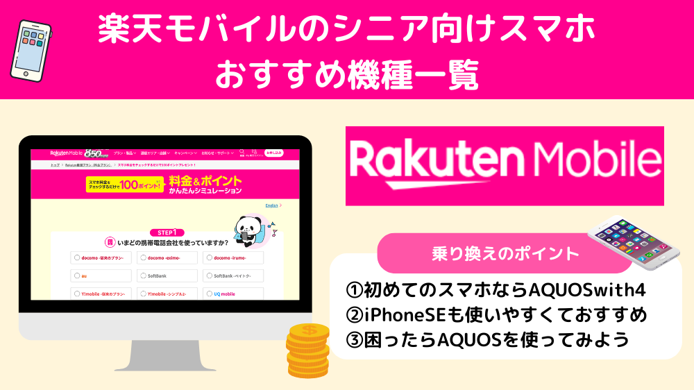 楽天モバイルのシニア向けスマホについて、おすすめ機種や選び方、契約方法まで詳しく解説しました。