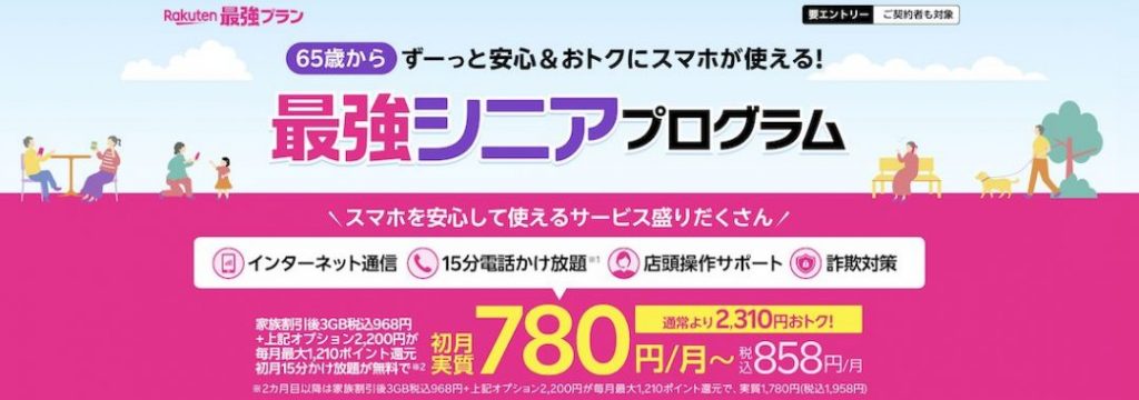 また、楽天モバイルをシニアの方が契約するメリットもあります。