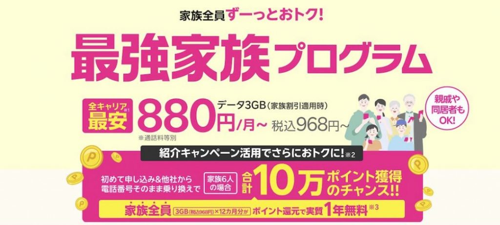 - 65歳以上は最強シニアプログラムでお得→実質初月858円/2ヶ月目から1,958円(家族割・ポイント還元含む)
