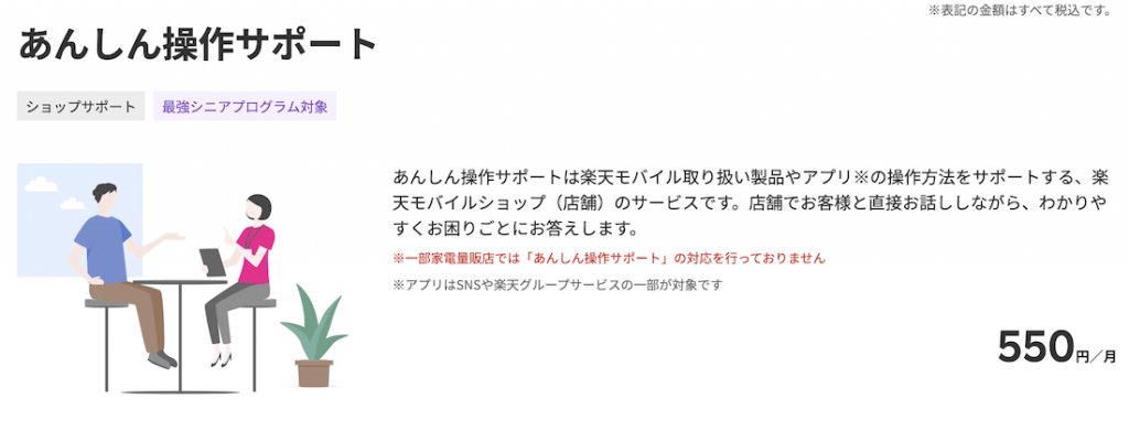 楽天モバイルの店舗には有料(550円/回)の「あんしん操作サポート」というサービスがあります。