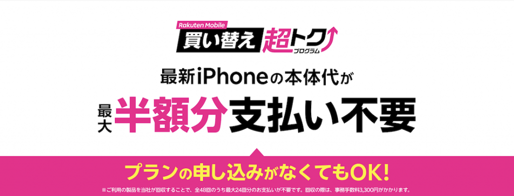 そんな方には分割支払いプログラム「楽天モバイル買い替え超トクプログラム」がおすすめです。