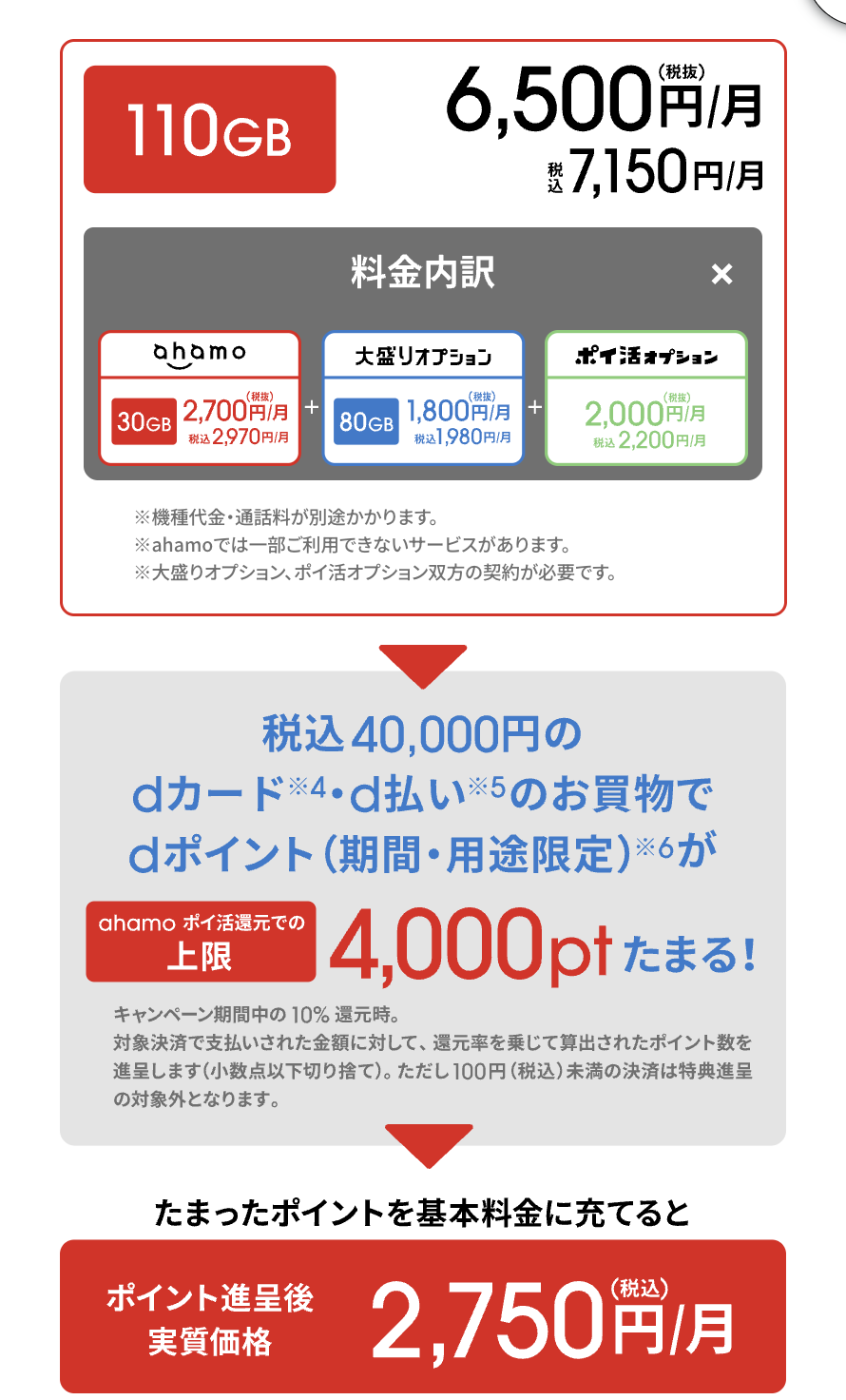 | データ増量オプション*(550円/月)加入時。6か月間無料。 | |||