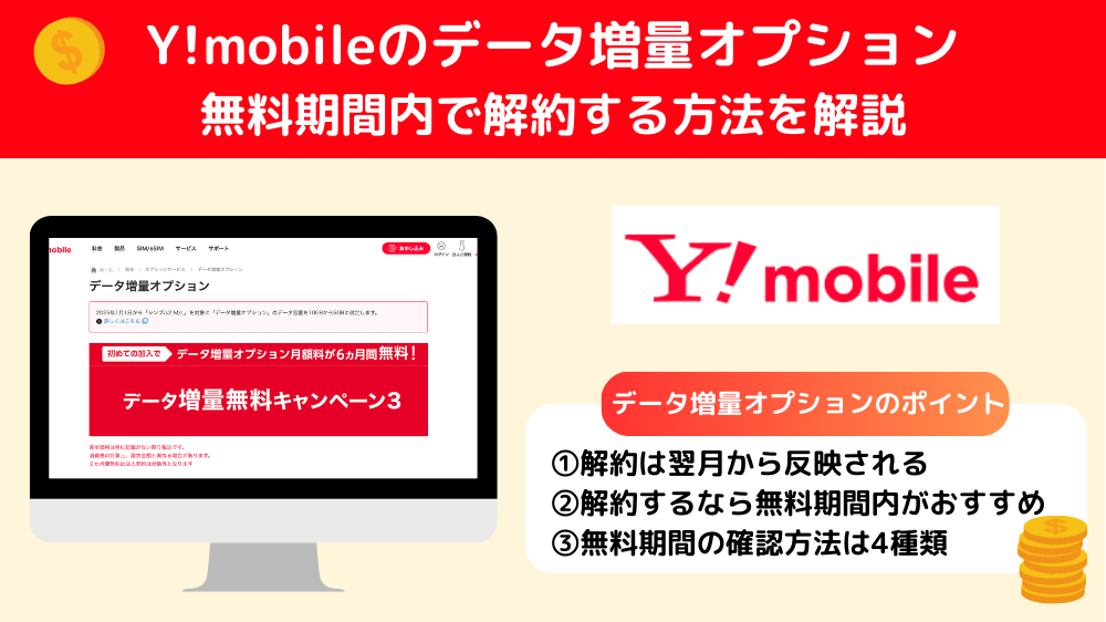 ワイモバイルのデータ増量オプションの解約方法は簡単!無料期間内に解約する方法を解説