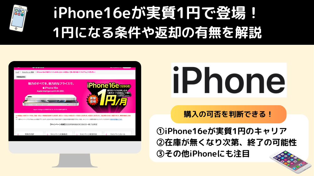 iPhone16eの1円キャンペーンまとめ!各キャリア毎にわかりやすく解説