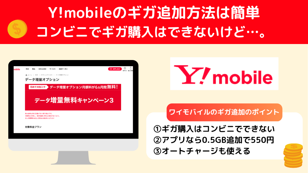ワイモバイルのギガ購入はコンビニ利用不可!ギガ追加のやり方とお得にギガ増量する方法を解説