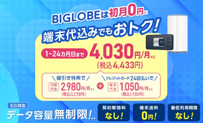 現在BIGLOBE WiMAXで実施しているキャンペーンは以下のとおりです。
