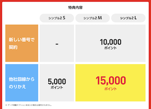 - 他社からのお乗り換え(MNP)または新規契約のみが対象