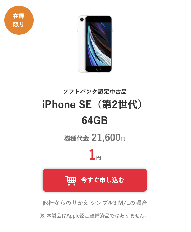 その代わりに、ソフトバンク認定中古品としてiPhoneを安く購入することができます。