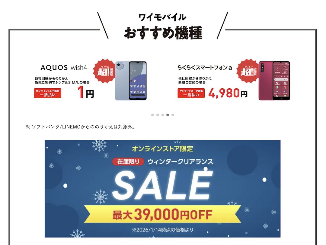 ■ワイモバイルは、オンラインストア限定のキャンペーンが最もお得