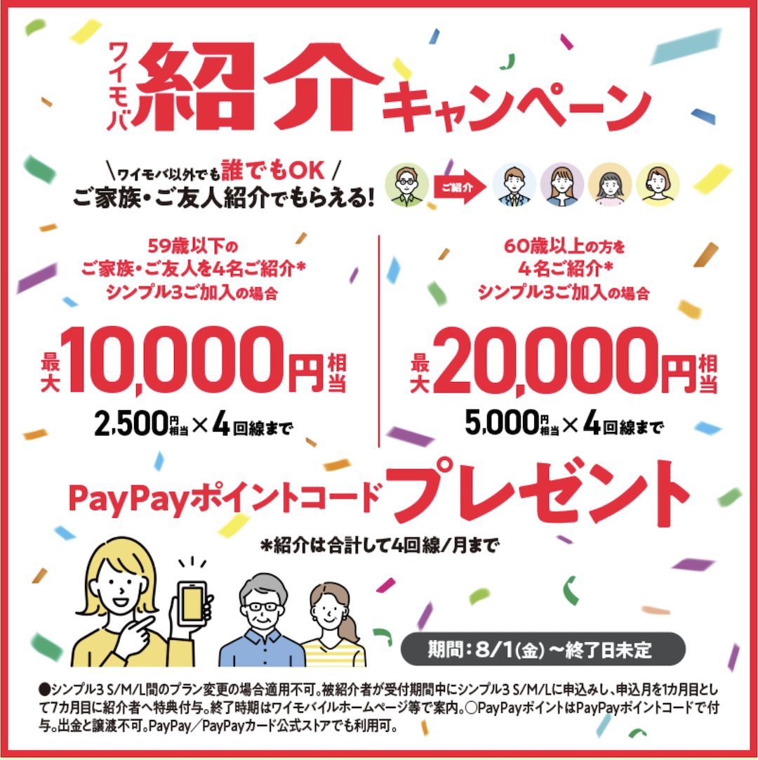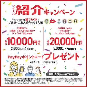 店舗またはネットからの契約で、対象期間中のPayPay支払いがポイントで戻って来るキャンペーンです。