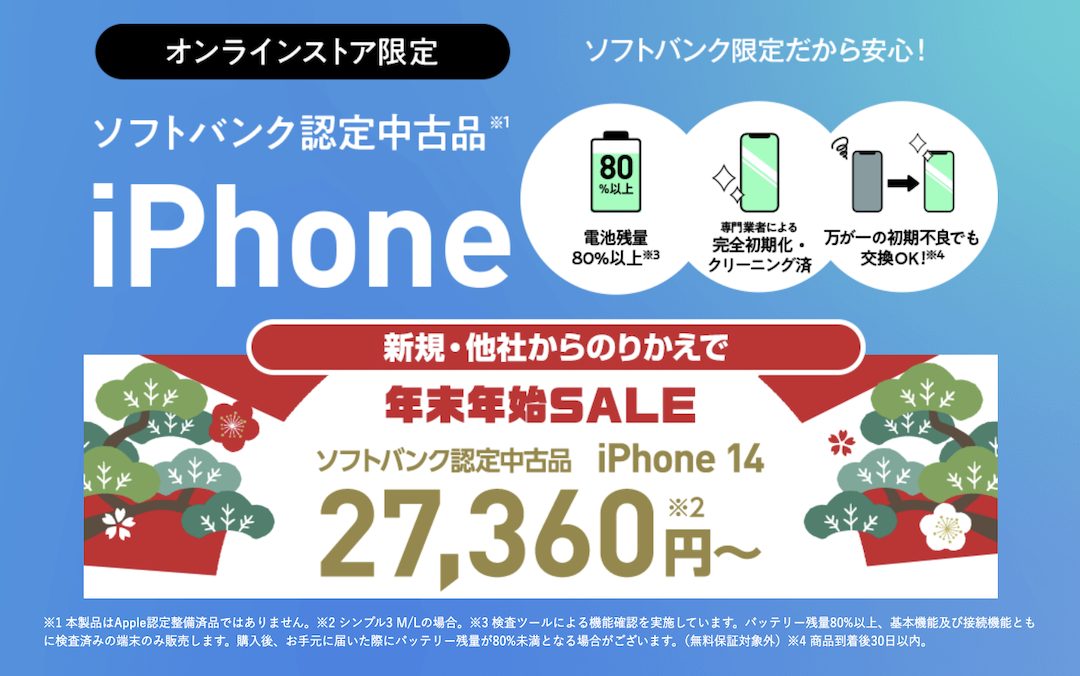 ソフトバンクが整備した認定中古品iPhoneがお得に購入できるキャンペーン。