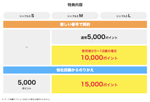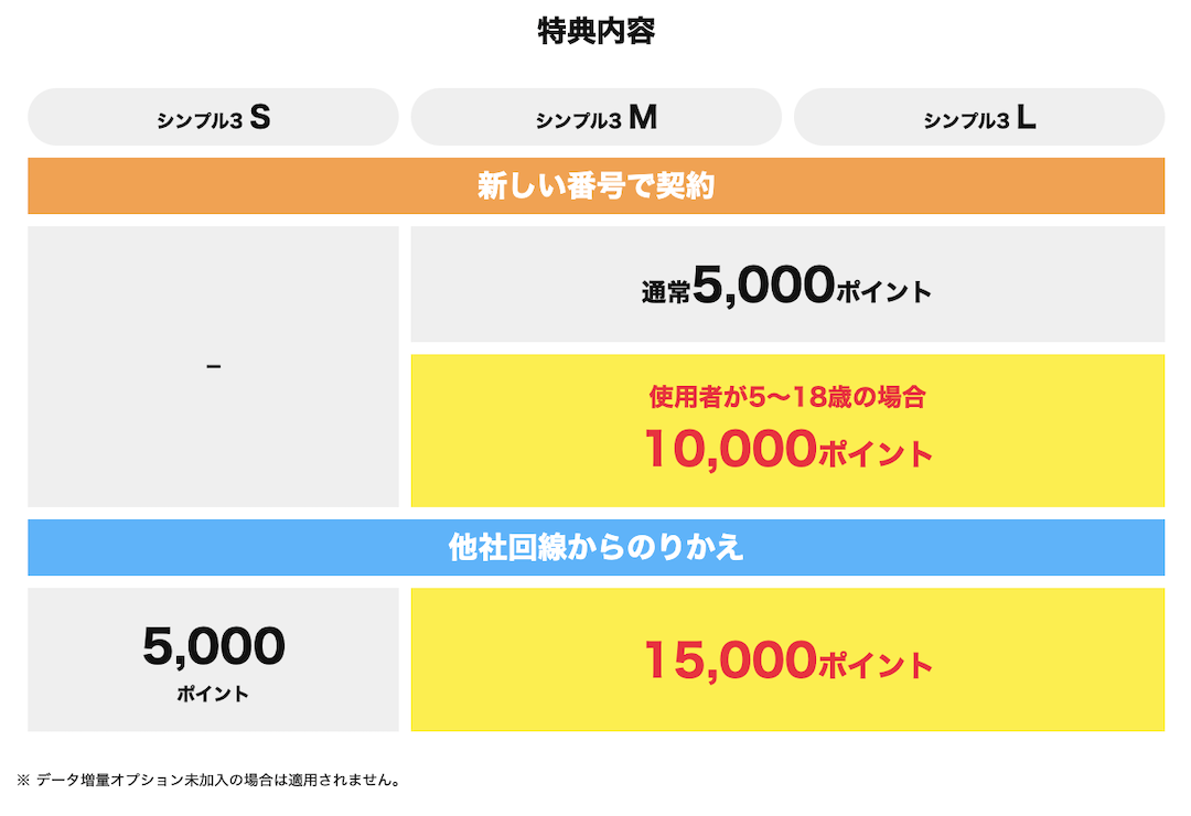 他社からの乗り換えで、シンプル3 S/M/Lとデータ増量オプション(550円/月)に加入