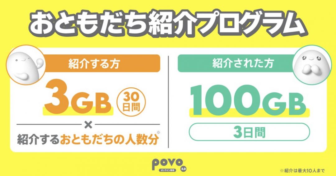 povoを紹介した人もされた人も3GBもらえるおともだち紹介プログラム。